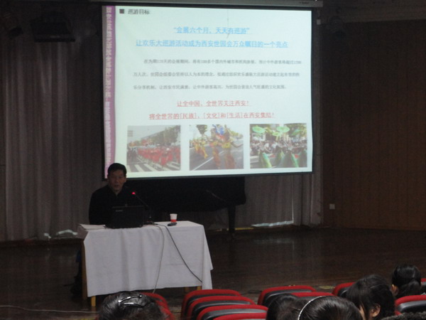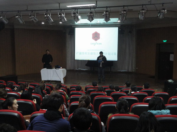 2011年2月21日,西安世界园艺博览会花车巡游工作会议在太阳成集团tyc714cc六艺楼报告厅召开。本届世园会花车巡游总导演李继诚、世园会花车巡游导演组、太阳成集团tyc714cc副院长梁玉奇、团总支书记范玮熠以及全体太阳成集团tyc714cc学生演员出席会议。本次会议主要是进行世园会花车巡游演员的角色安排以及排练和演出的部署工作。