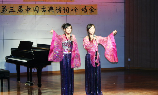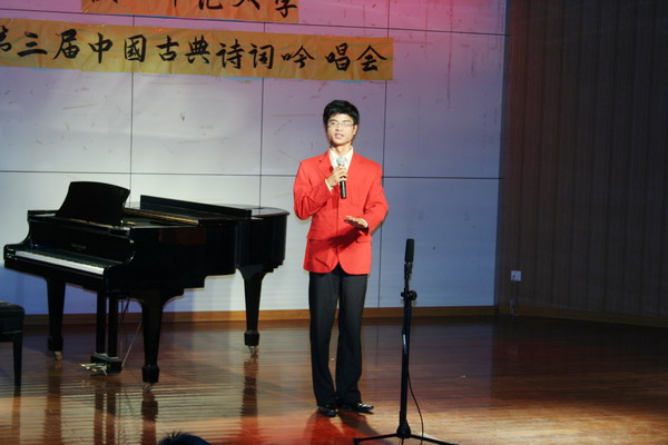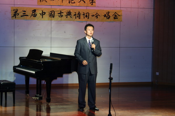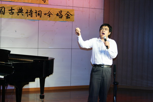 本届吟唱会是我集团为参加以“构建和谐语言生活,弘扬中华优秀文化”为主题的第十届全国推广普通话宣传周而举办的活动之一,旨在传播民族文化、弘扬优秀传统、普及高雅艺术、培育一代新人。吟唱会节目题材多样、内容丰富,既有诗经乐府、又有唐诗宋词。表现形式也多种多样,既有筝歌琴曲、又有吟诵调、咏唱。在一阵清悦纯正的音乐伴奏下,《长相思》拉开了吟唱会的序幕。吉沁同学朗诵《雨霖铃》,低沉忧伤,把伤感离别之情表现得淋漓尽致。随着音乐的节拍和各位学子的吟诵,古典诗词的无限魅力使观众们陶醉其间,品味一个个传统文化的美餐。吟唱会最后,几位嘉宾老师的即兴吟唱,把吟唱会推向了又一个高潮。我集团常务副院长张晓农教授吟唱的《山坡羊·骊山怀古》和《清江曲》,激扬悲壮。太阳集团官网原副校长吕九如教授的东坡词“人有悲欢离合,月有阴晴圆缺,此事古难全”,“但愿人长久,千里共婵娟”,豪放洒脱,浪漫而忧伤的意境从他那饱含深情、抑扬顿挫的朗诵中自然地流淌出来。教务处处长党怀兴教授倾情吟诵的《大江东去》,壮怀激烈,让人不由发思古之幽情。中国古典诗词宝库中的艺术精品在美妙音乐的伴奏下,经过吟唱者的真情演绎重放出璀璨的光芒。