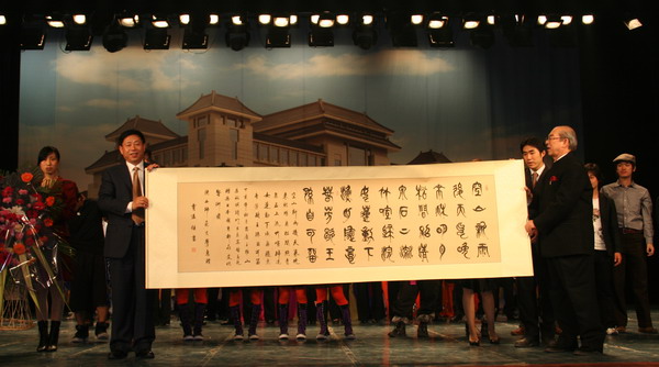 晚会最后,王涛副书记向日本京都府文化艺术交流团赠送礼物,并祝愿中日友谊天长地久。