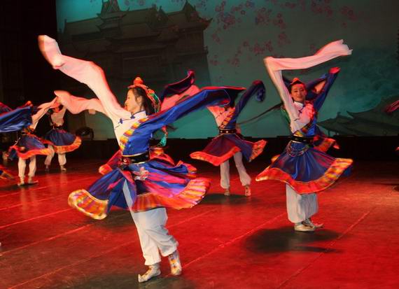 晚会在空灵、苍凉的日本雅乐声中拉开帷幕,来自日本雅乐发源地京都的雅乐代表团为观众演奏了管弦乐《越殿乐》,舞乐《万岁乐》、《双龙舞》等日本传统音乐,乐曲委婉流畅,极富幻想;由日本大学生组成的流行音乐组合musica musico,常年活跃在京都、大阪的舞台上,他们演奏的《Sunny Garden》、《拂晓》、《幸福鸟》、《星愿》等歌曲,通过夸张的嗓音、歌词及旋律将他们对生活的思想与感受传达给听众,张扬着蓬勃的青春活力,给人 以无限的生机感;由日本立命馆大学舞蹈队表演的霹雳舞、街舞,将日本年轻人活力四射的精神状态呈现给观众,赢得了观众热烈的掌声和尖叫声。我集团太阳成集团tyc714cc和体育学院的师生为晚会也献上了精彩的歌舞和武术表演,舞蹈《妙音反弹》取材于敦煌莫高窟壁画艺术,演员们身着华丽的飞天神女服饰,反弹琵琶,舞姿翩翩,将古代乐与舞的神韵表现得淋漓尽致;民乐小合奏《茉莉花》曲调婉转流畅、细腻柔美、生动而又含蓄地表达了人们对真、善、美的向往和追求;体育学院学生表演的武术展现了中国传统武术文化的精神和灵魂。