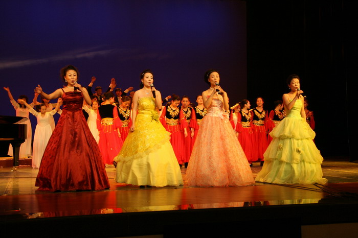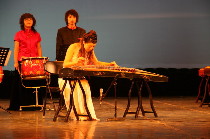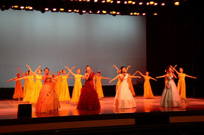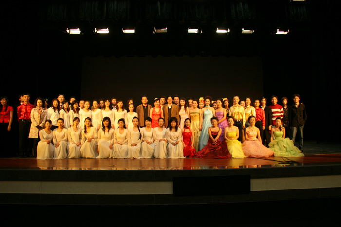 晚会以器乐合奏《丰收锣鼓》拉开帷幕。整场晚会节目丰富多彩,既有体现学生专业水平的独唱《大西北的鼓声》、火热的现代舞《和平先锋》和独奏《新疆之春》,又有小品《招演员》、口技《今儿我请吃饭》等语言类节目,将音乐会一次又一次的推向高潮, 赢得了在场观众的阵阵掌声,现场气氛非常热烈。晚会在07级全体研究生的大合唱《青春舞曲》、《五月的鲜花》的歌声中落下帷幕。演出结束后,学院领导与全体演职人员合影留念。